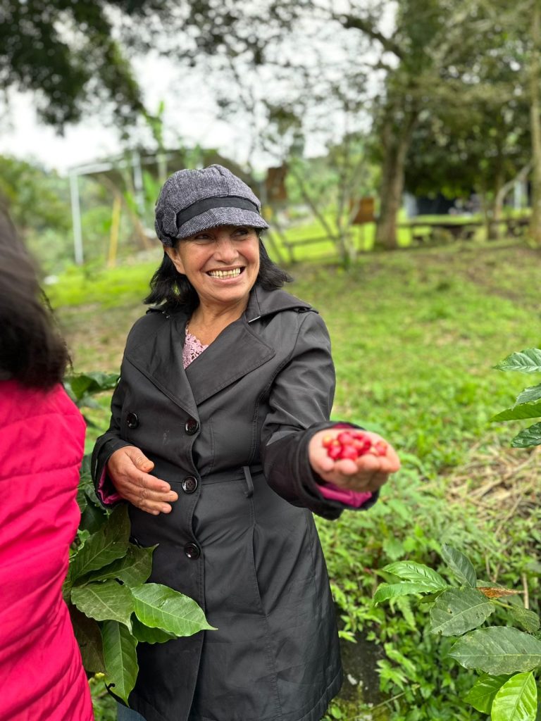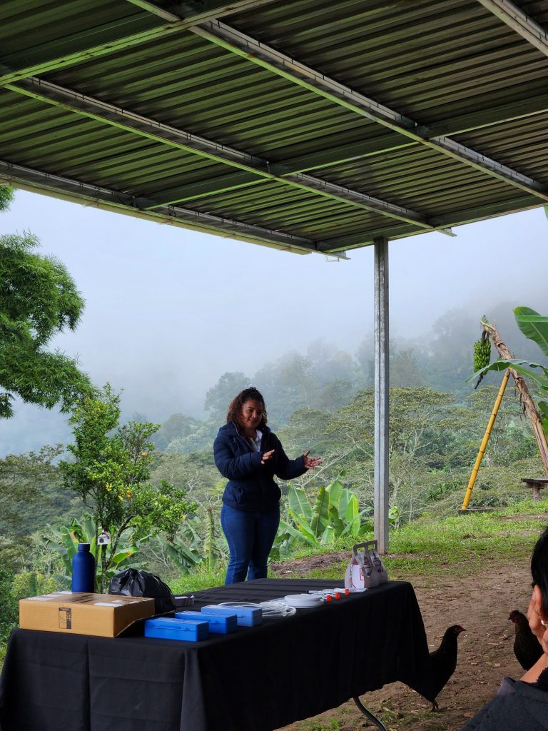 La jornada inició con una cálida bienvenida y la presentación de las personas participantes. Posteriormente, la anfitriona de la finca, Mirian Yaneth Rodríguez, compartió su inspiradora historia de crecimiento personal y productivo. Durante su intervención, relató los desafíos que ha enfrentado a lo largo de su trayectoria y cómo, con el apoyo incondicional de su madre, hermanos e hijos, ha logrado fortalecer su proyecto cafetalero.