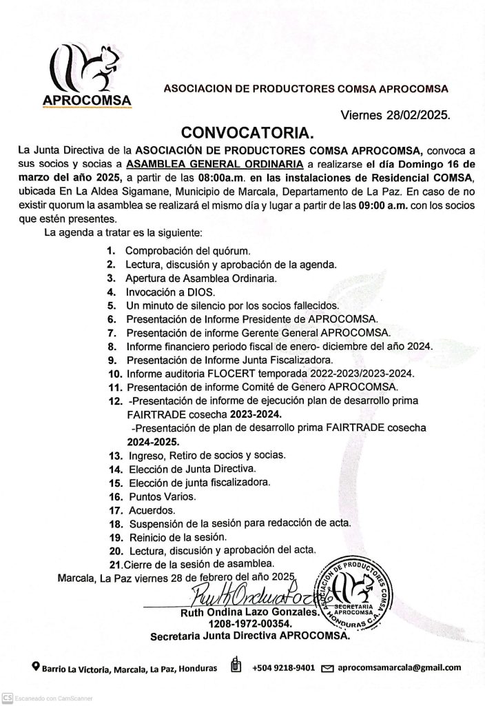 Convocatoria Asamblea General Ordinaria | 16 de Marzo 2025