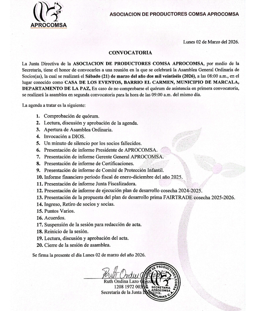 Convocatoria Asamblea General Ordinaria | 21 de Marzo 2026